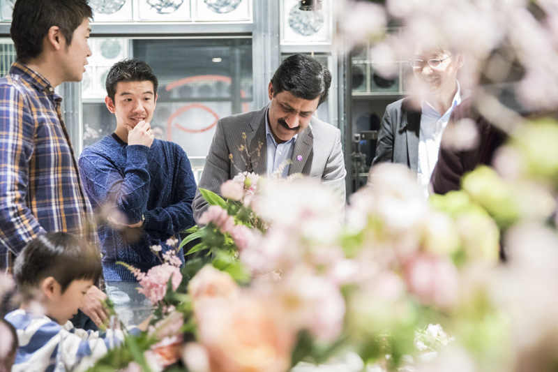 ジアウディンさんのご希望で、 SDAの代表的コンテンツである『花塾』(協力:サンジョルディ・フラワーズ様)を一緒に体験。その後子育てにおける父親の在り方についての意見交換をするトークセッションの場を設けさせていただく運びとなりました。会場は SDAメンバーのシェフ米澤文雄氏のお店『 THE BURN』をお借りしました。