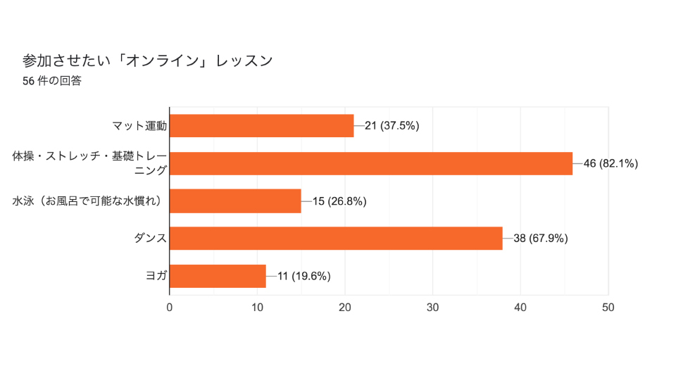 オンライン学習のニーズやコンテンツは世の中にあふれるほど存在しますが、「体育、運動をオンラインで!」というのは常識の枠を超えた斬新な発想です。スーパーダディ協会内での簡易アンケートによると、オンライン体育に対するダディの皆さんの関心も増加傾向です。